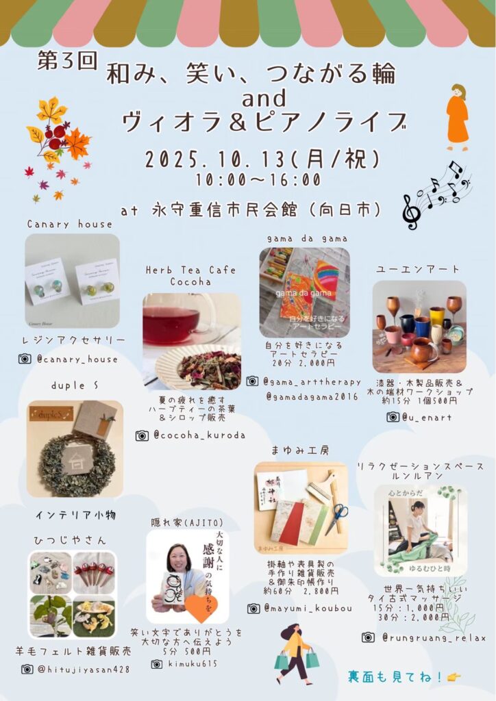 10/13に地元向日市で開催されたマルシェ「「第3回 和み、笑い、つながる輪」に参加しました。