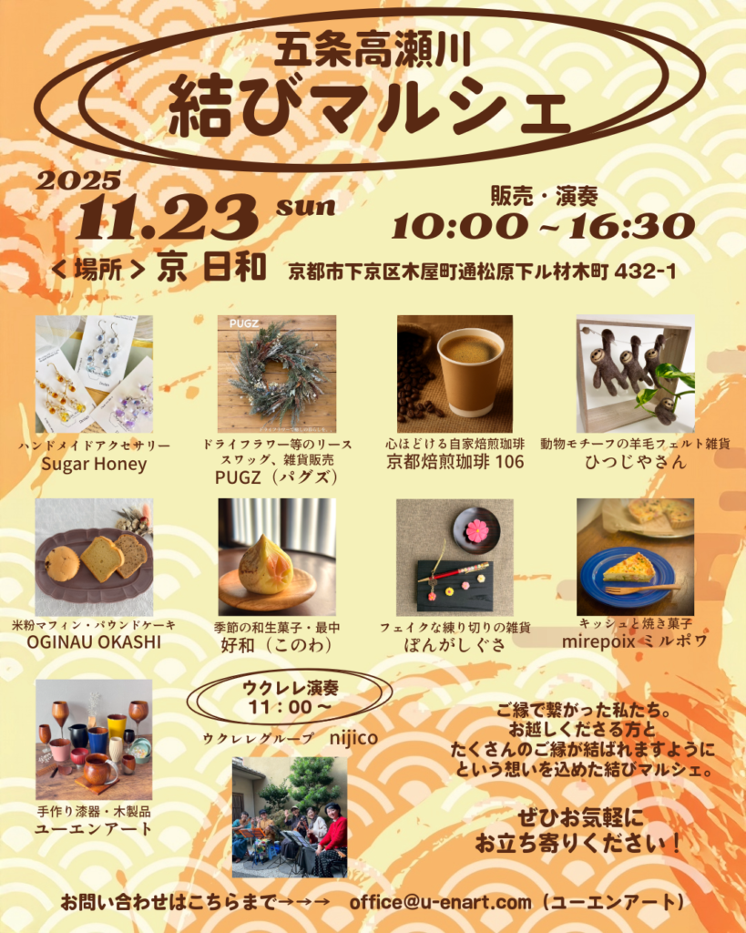 2025年11月23日(日)3回目となる「五条高瀬川結びマルシェ」をmirepoix(ミルポワ)さんと共催しました。